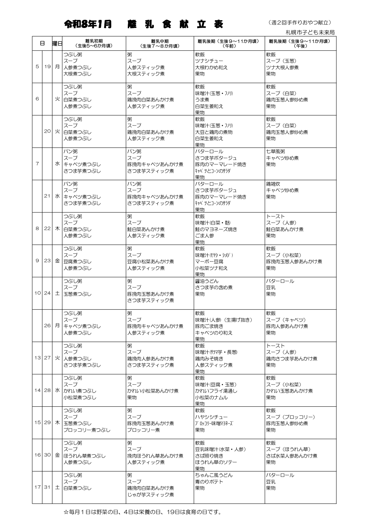 2026.1月献立です